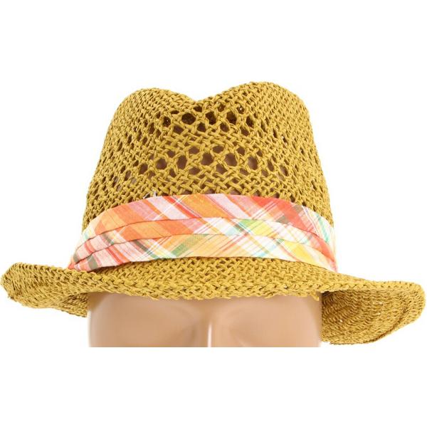 New Designed Layered hat band with vibrant color Women 100% Straw Fedora Images |